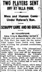 In a game of ugly confrontation Frank Moss is sent off on the last of his 283 appearances over his eleven seasons with the club before moving on to Oldham Athletic in August 1929.