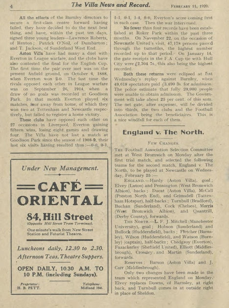 ๐ฉ 11 Feb 1920, Villa 2-1 Arsenal, Villa Park