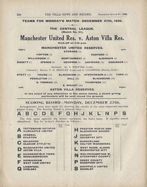 ๐ฅ 25 Dec 1920, Villa 3-4 United, Villa Park