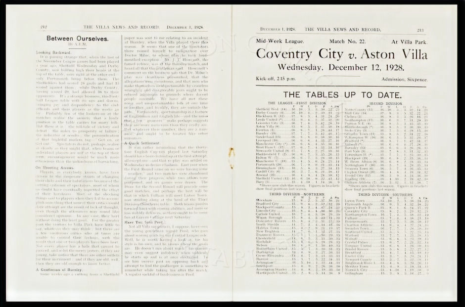 ๐ฉ 1 Dec 1928, Villa 2-0 Everton, Villa Park