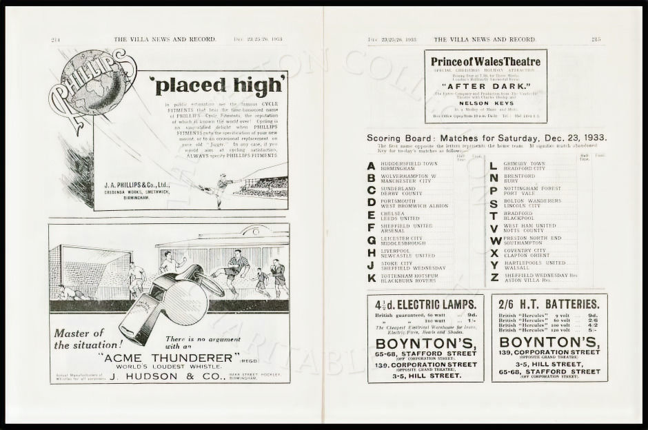 ๐ฉ 23 Dec 1933, Villa 2-1 Everton, Villa Park