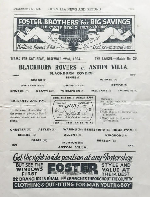 ๐จ 22 Dec 1934, Villa 1-1 Blackburn, Villa Park