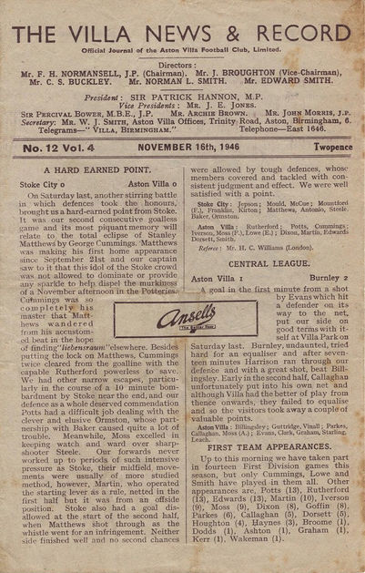 ๐จ 16 Nov 1946, Villa 1-1 Bolton, Villa Park