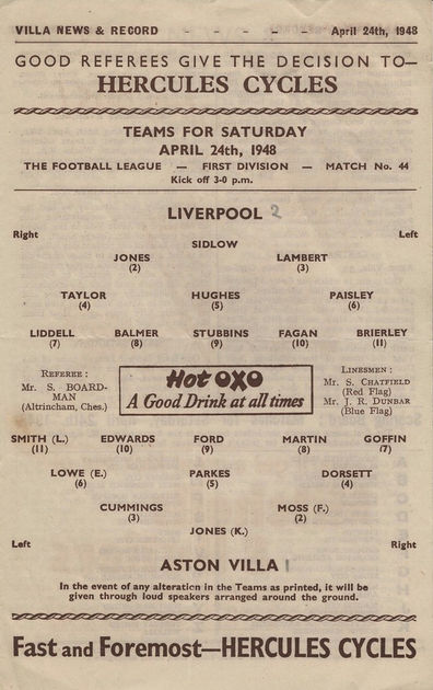 ๐ฉ 24 Apr 1948, Villa 2-1 Liverpool, Villa Park