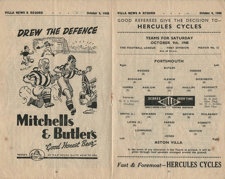 ๐จ 9 Oct 1948, Villa 1-1 Portsmouth, Villa Park