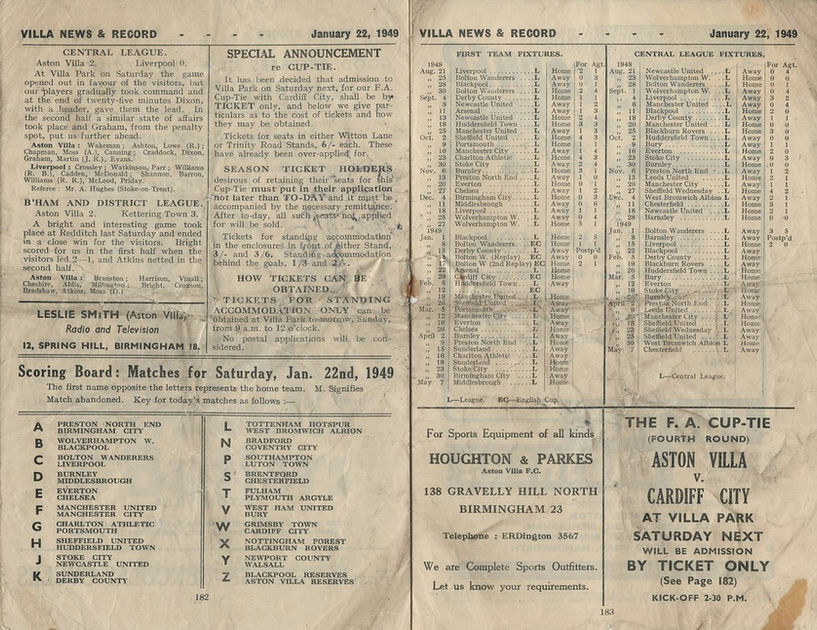 ๐ฉ 22 Jan 1949, Villa 1-0 Arsenal, Villa Park
