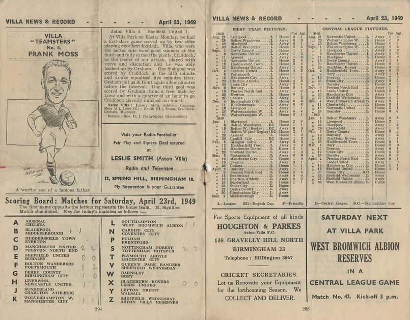 ๐ฉ 23 Apr 1949, Villa 2-1 Stoke, Villa Park
