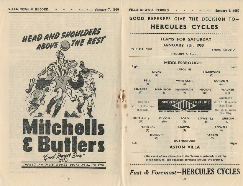 ๐จ 7 Jan 1950, Villa 2-2 Boro, Villa Park