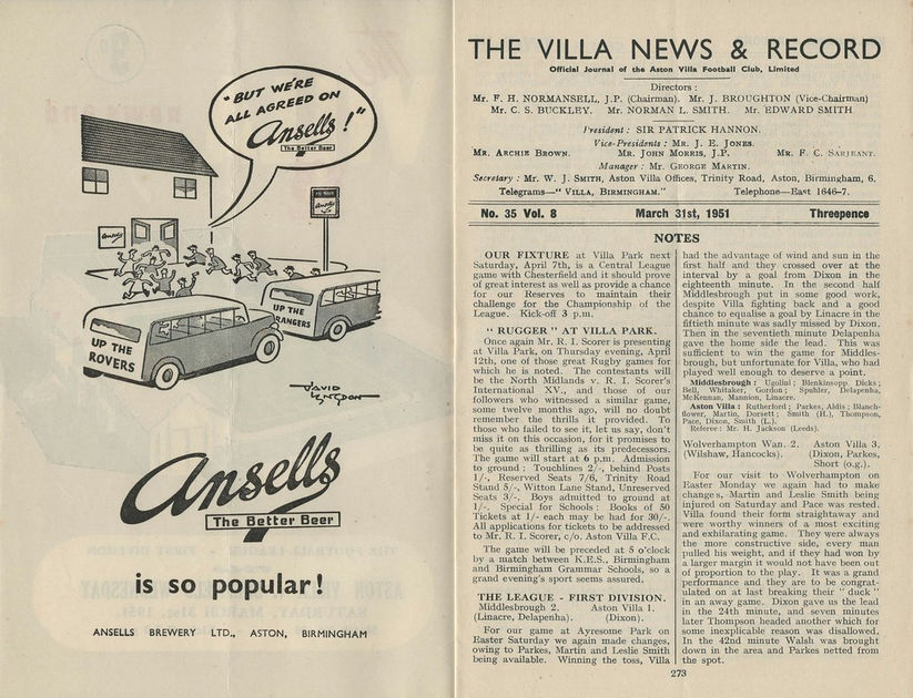 Darren Hunt for the kind permission to use his collection of historic Villa programmes. https://www.flickr.com/photos/astonvillaprogrammes