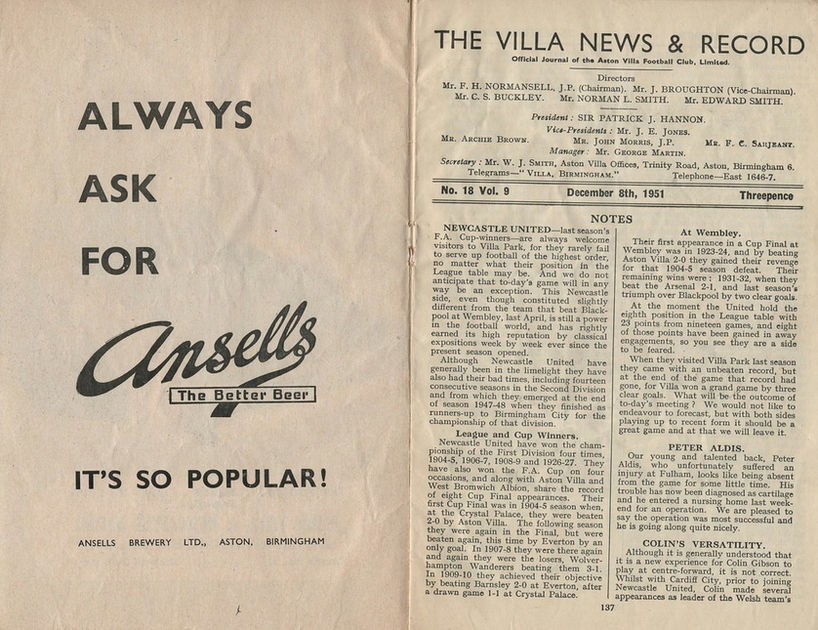 ๐จ 8 Dec 1951, Villa 2-2 Newcastle, Villa Park