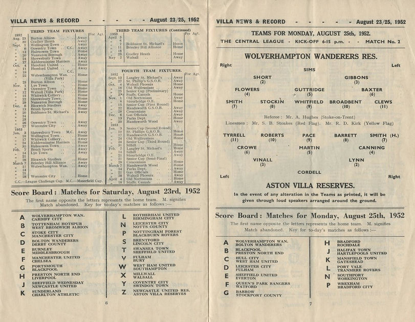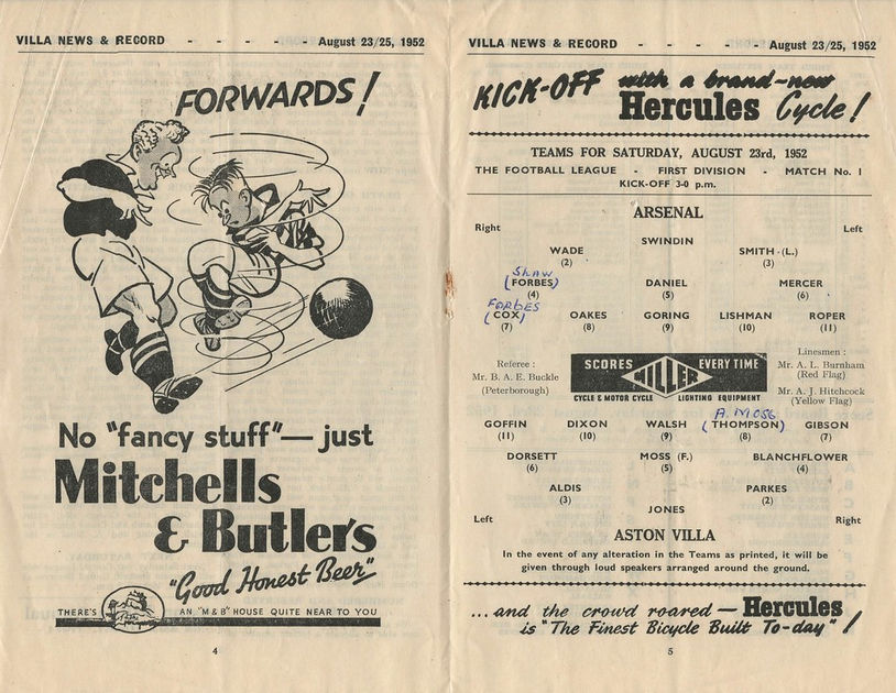 ๐ฅ 23 Aug 1952, Villa 1-2 Arsenal, Villa Park