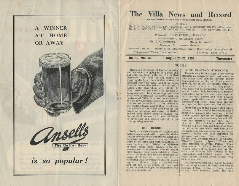 Darren Hunt for the kind permission to use his collection of historic Villa programmes. https://www.flickr.com/photos/astonvillaprogrammes