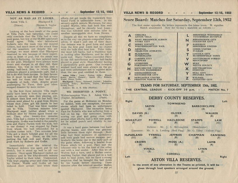 ๐ฅ 15 Sep 1952, Villa 0-1 Wolves, Villa Park