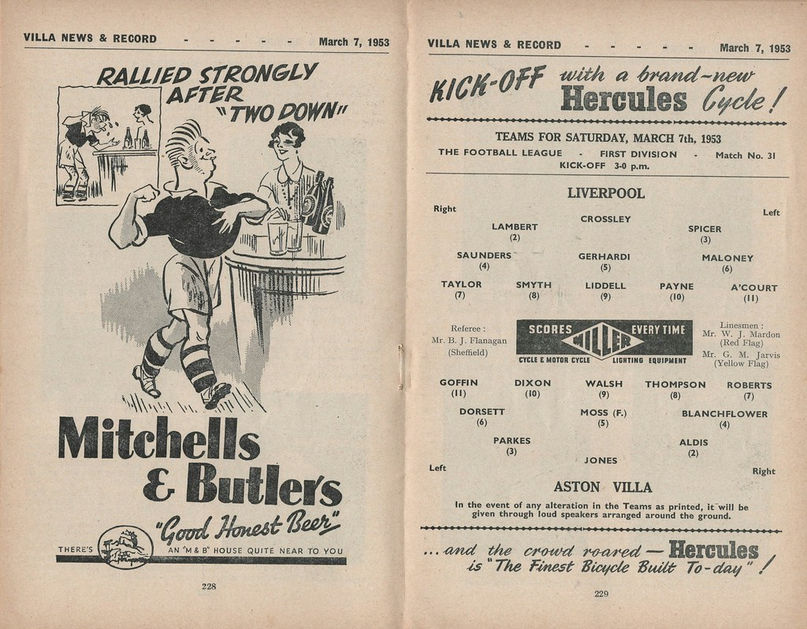 ๐ฉ 7 Mar 1953, Villa 4-0 Liverpool, Villa Park
