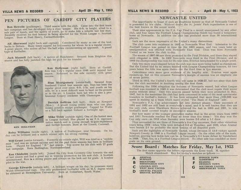 ๐ฉ 29 Apr 1953, Villa 2-0 Cardiff, Villa Park