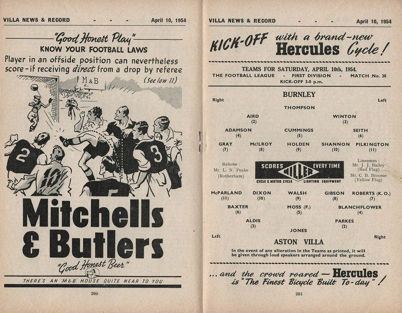 ๐ฉ 10 Apr 1954, Villa 5-1 Burnley, Villa Park