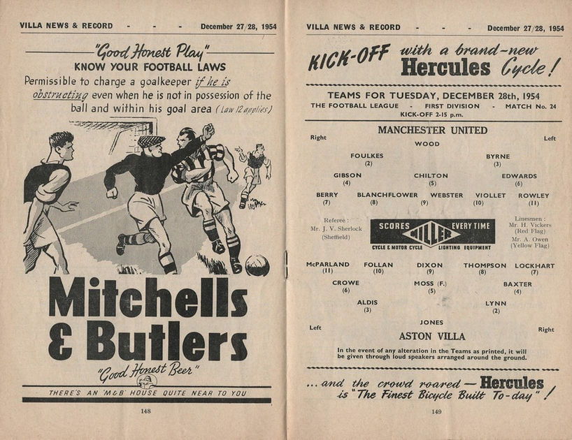 ๐ฉ 28 Dec 1954, Villa 2-1 United, Villa Park