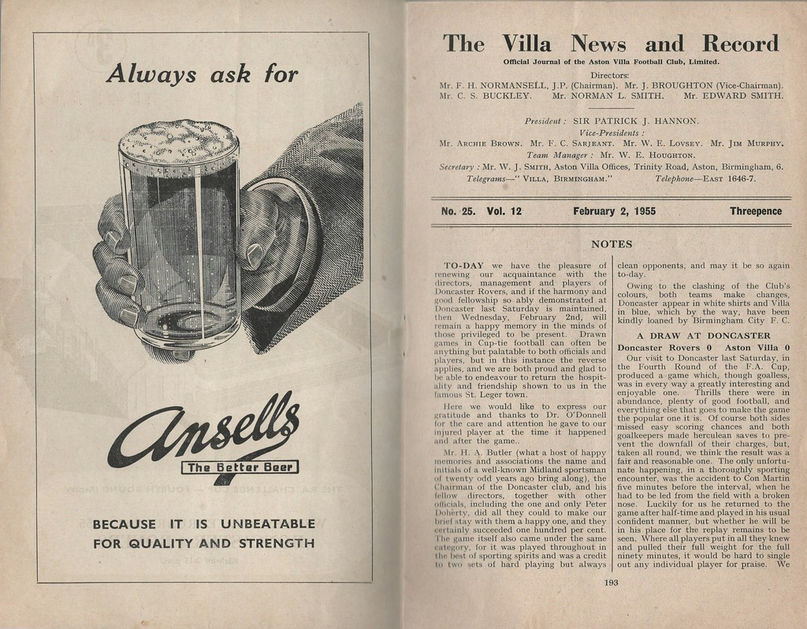 ๐จ 2 Feb 1955, Villa 2-2 Doncaster, Villa Park