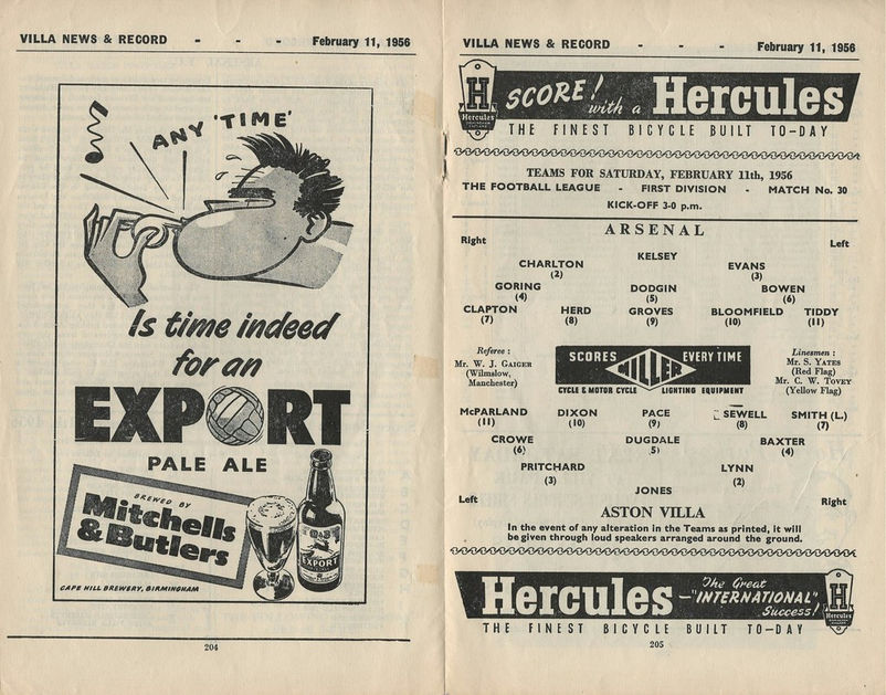 ๐จ 11 Feb 1956, Villa 1-1 Arsenal, Villa Park