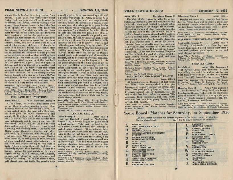 ๐ฉ 1 Sep 1956, Villa 3-2 Blackpool, Villa Park