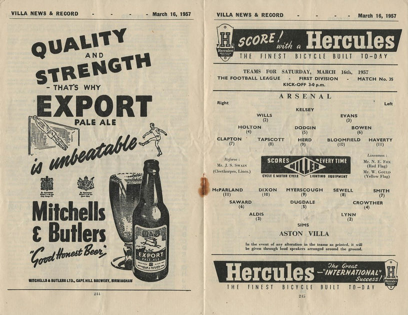 ๐จ 16 Mar 1957, Villa 0-0 Arsenal, Villa Park