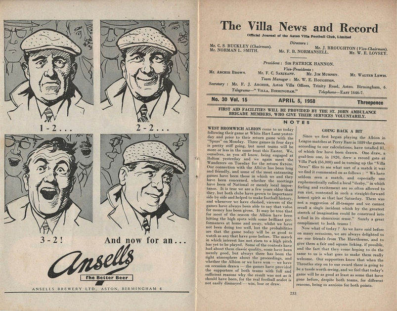 Darren Hunt for the kind permission to use his collection of historic Villa programmes. https://www.flickr.com/photos/astonvillaprogrammes