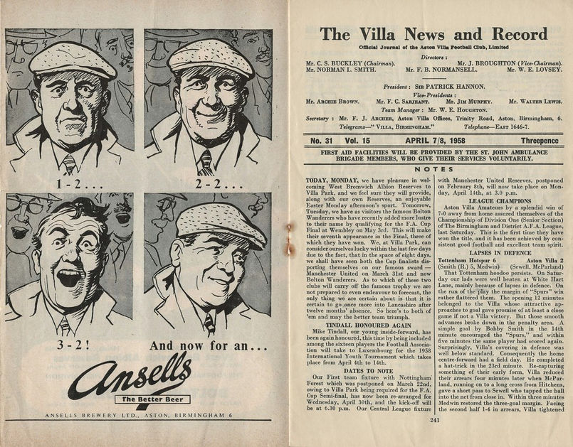๐ฉ 8 Apr 1958, Villa 4-0 Bolton, Villa Park
