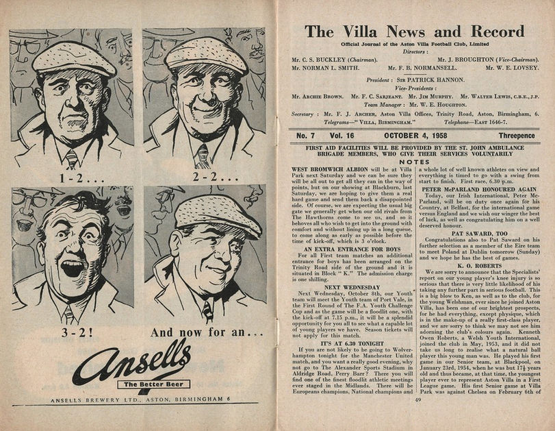 Darren Hunt for the kind permission to use his collection of historic Villa programmes. https://www.flickr.com/photos/astonvillaprogrammes