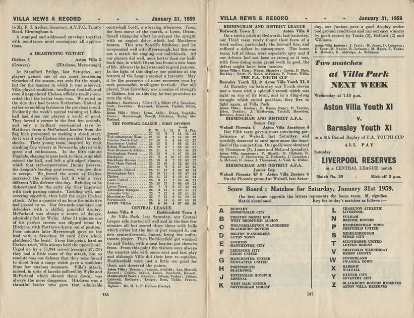 ๐ฉ 31 Jan 1959, Villa 3-1 Chelsea, Villa Park
