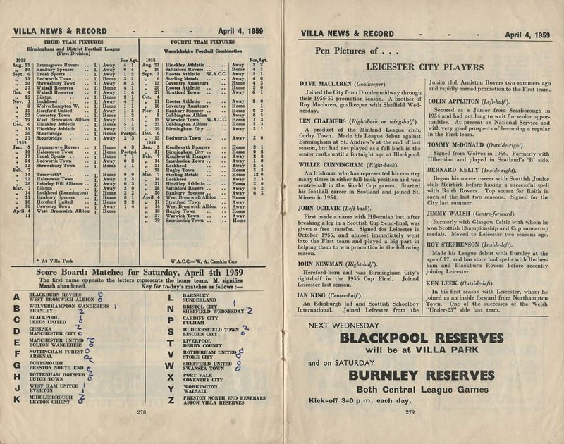 ๐ฅ 4 Apr 1959, Villa 1-2 Leicester, Villa Park