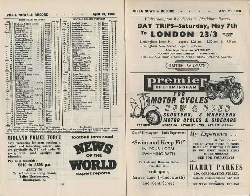 ๐ฉ 23 Apr 1960, Villa 3-0 Rotherham, Villa Park