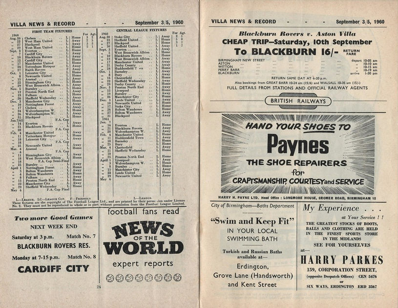 ๐ฉ 3 Sep 1960, Villa 3-2 Everton, Villa Park