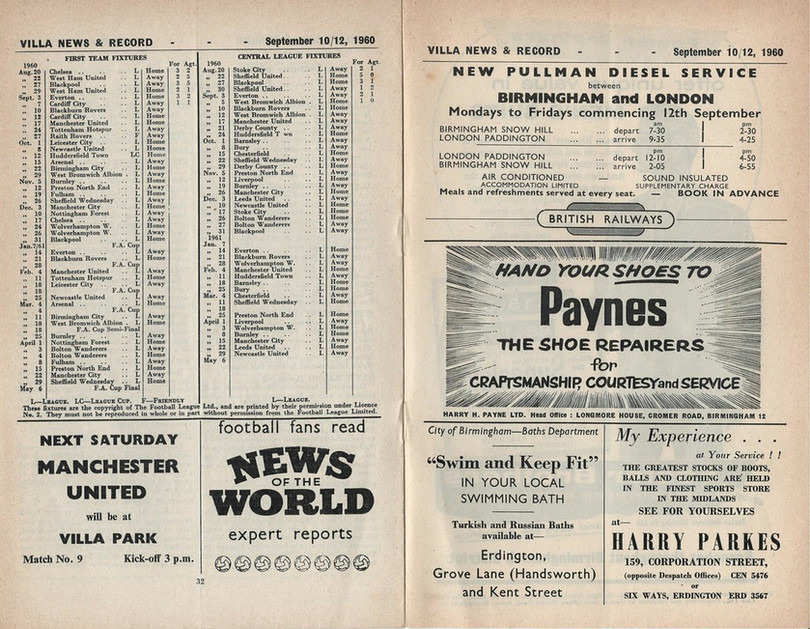 ๐ฉ 12 Sep 1960, Villa 2-1 Cardiff, Villa Park