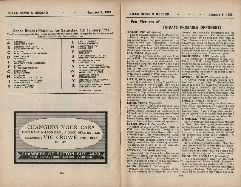 ๐ฉ 6 Jan 1962, Villa 4-3 Palace, Villa Park