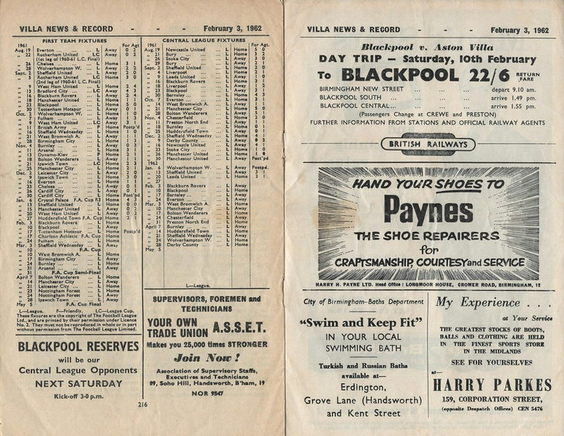 Darren Hunt for the kind permission to use his collection of historic Villa programmes. https://www.flickr.com/photos/astonvillaprogrammes