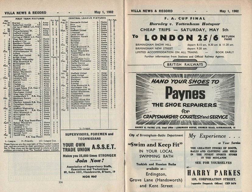 ๐จ 1 May 1962, Villa 2-2 Cardiff, Villa Park