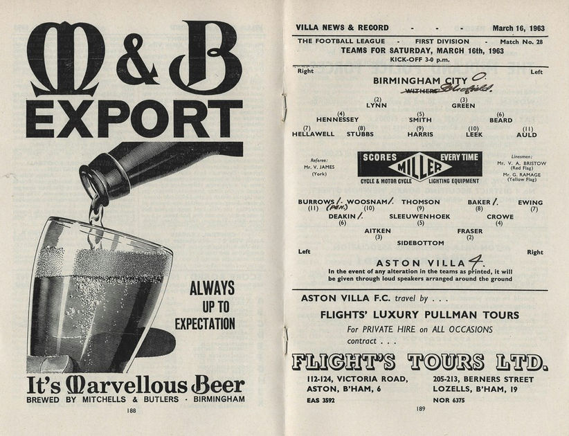 ๐ฉ 16 Mar 1963, Villa 4-0 Birmingham, Villa Park