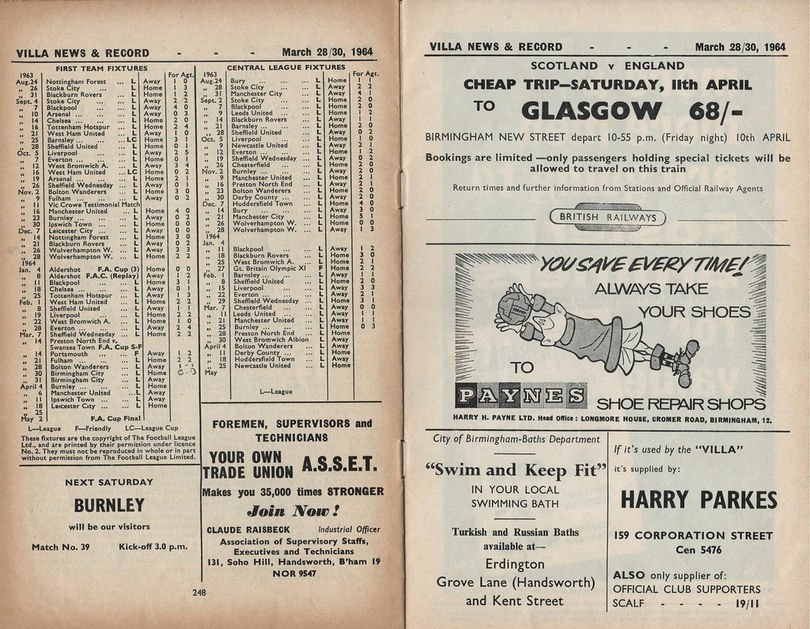 ๐ฅ 30 Mar 1964, Villa 0-3 Birmingham, Villa Park