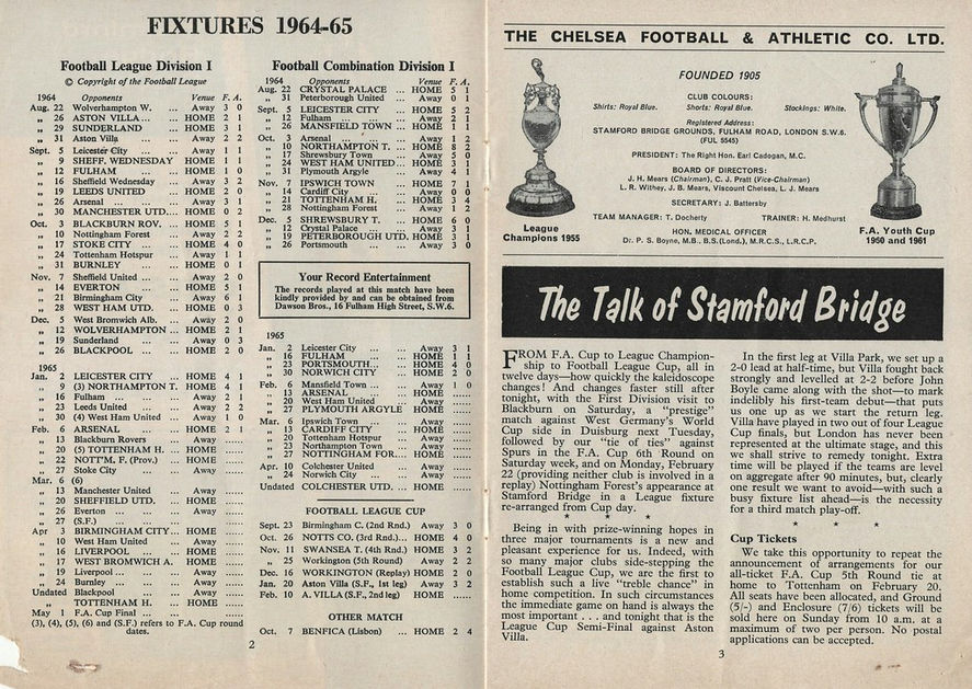 ๐จ 10 Feb 1965. Villa 1-1 Chelsea, Stamford Bridge