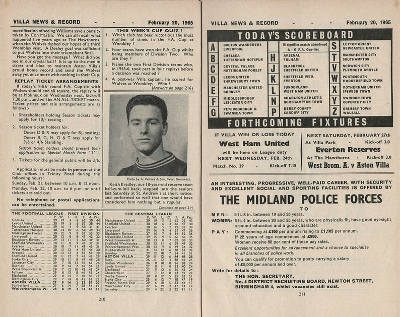 ๐จ 20 Feb 1965, Villa 1-1 Wolves, Villa Park