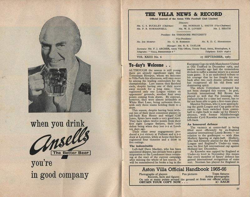 ๐ฉ 25 Sep 1965, Villa 3-2 Spurs, Villa Park
