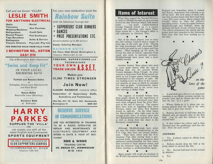 Darren Hunt for the kind permission to use his collection of historic Villa programmes. https://www.flickr.com/photos/astonvillaprogrammes