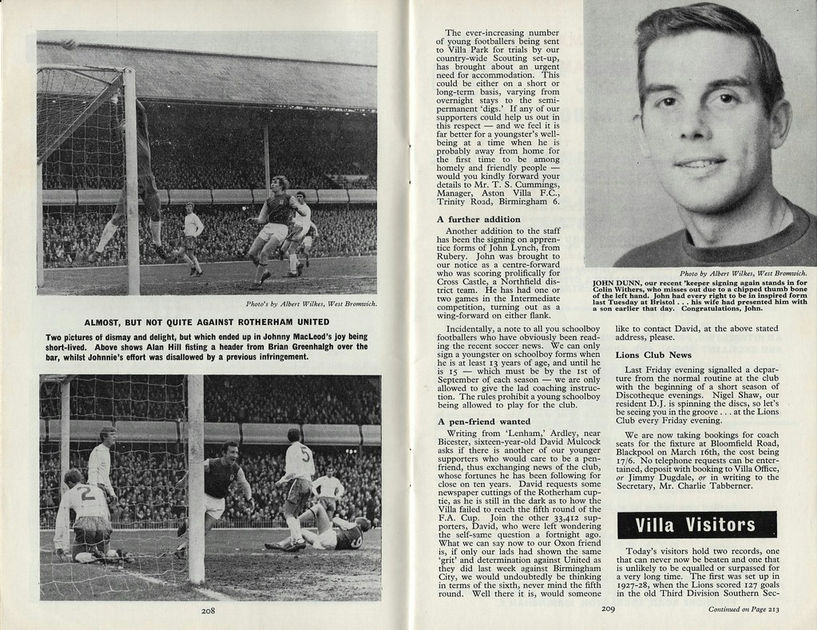 Darren Hunt for the kind permission to use his collection of historic Villa programmes. https://www.flickr.com/photos/astonvillaprogrammes