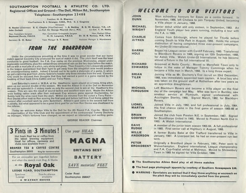 Darren Hunt for the kind permission to use his collection of historic Villa programmes. https://www.flickr.com/photos/astonvillaprogrammes