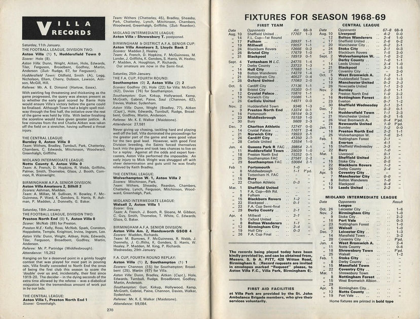 ๐ฉ 1 Feb 1969, Villa 2-0 Portsmouth, Villa Park