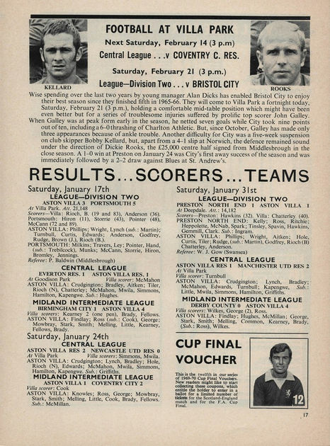 ๐จ 7 Feb 1970, Villa 1-1 Cardiff, Villa Park