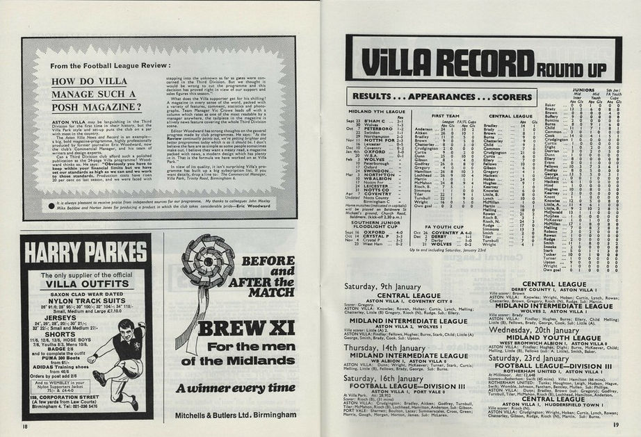 Darren Hunt for the kind permission to use his collection of historic Villa programmes. https://www.flickr.com/photos/astonvillaprogrammes