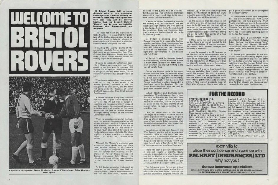 ๐ฉ 3 Apr 1972, Villa 2-1 Bristol Rovers, Villa Park
