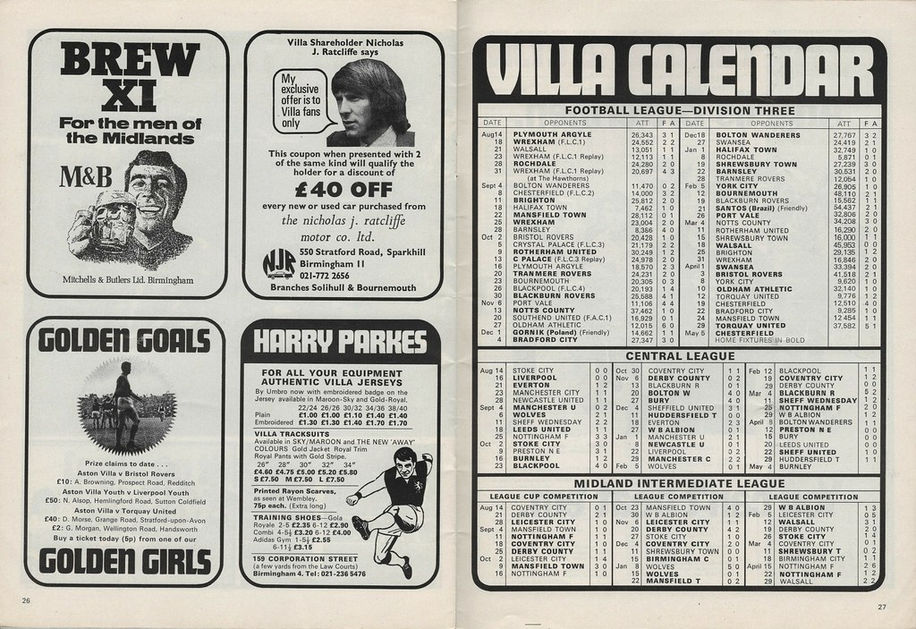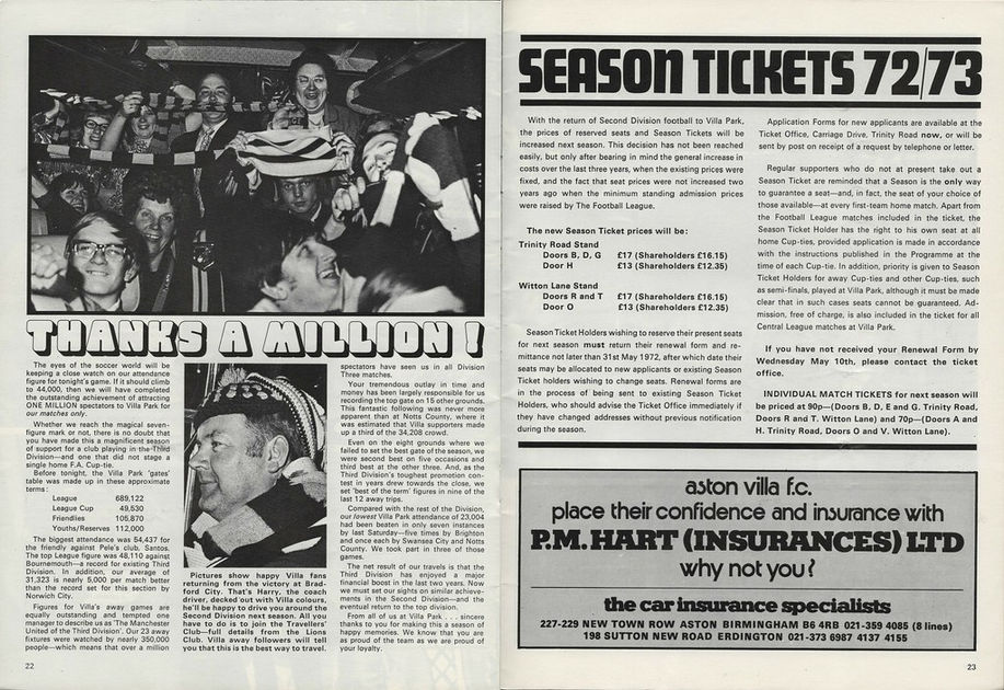 Darren Hunt for the kind permission to use his collection of historic Villa programmes. https://www.flickr.com/photos/astonvillaprogrammes