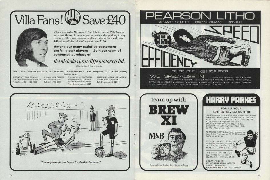 Darren Hunt for the kind permission to use his collection of historic Villa programmes. https://www.flickr.com/photos/astonvillaprogrammes